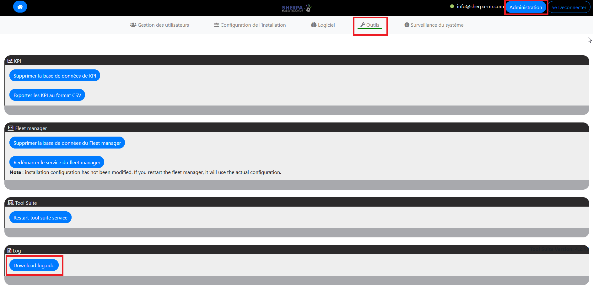 Pareil, le robot demandera la mise à jour du fleet manager et du robot, il suffira de suivre les cloches.