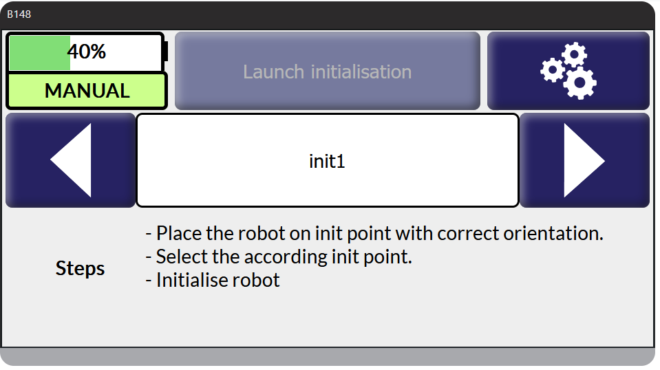On clique sur Initialisation et l’on choisit le point init1 où vous venez de placer le robot. On fait launch initialisation.