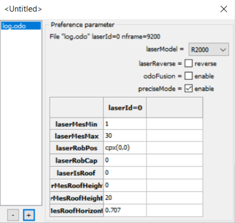 laserModel = R2000et cocher l’option preciseMode en [v] enable) -