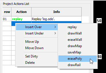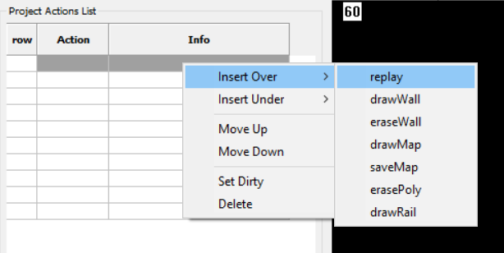 Maintenant que le projet est créé et que le log est importé dans le projet, l’étape suivante consiste à demander à MapFabric de relire le fichier et de créer la carte. Pour cela une action replay doit être ajouté à la « Project Action List ». Pour insérer une action, placer son curseur dans la Project Actions List et faire un « clic droit ».