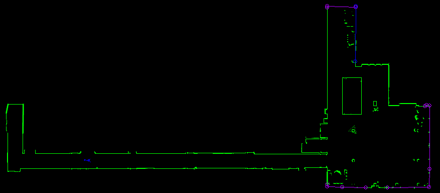 il faut éliminer tous les points parasites de la cartographie car ils représentent un obstacle pour le Sherpa qui ne pourra pas circuler à travers ce point. Quelques points non effacés dans le couloir peuvent empêcher le robot de circuler !