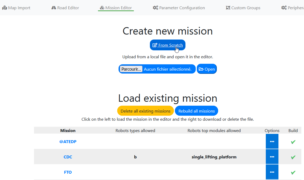 Dans le menu “Mission editor”, créer une nouvelle mission from scratch :