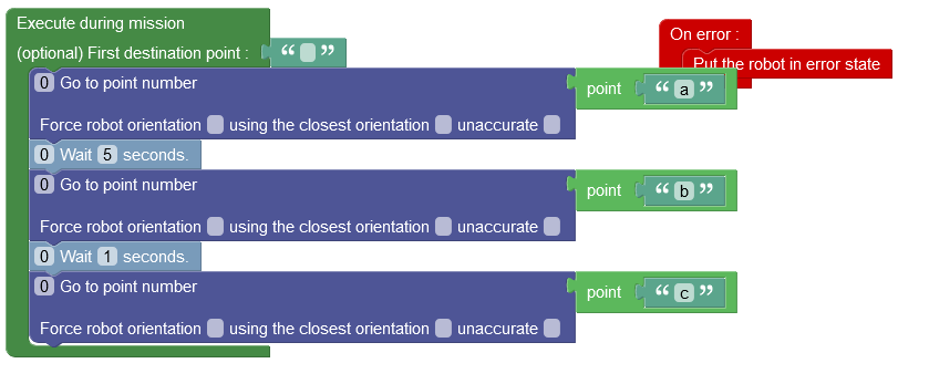 Nous allons développer un premier code simple de déplacement entre 3 points crées précédemment (a, b, c)