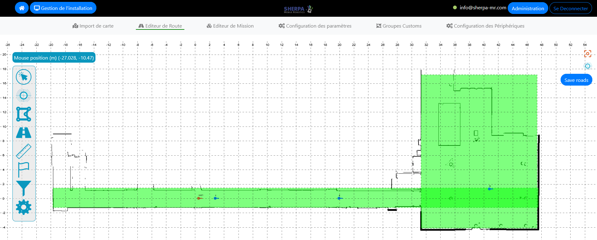 Nous pouvons maintenant placer les routes sur la carte. Les routes correspondent aux zones où le robot a le droit de circuler.