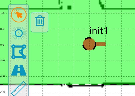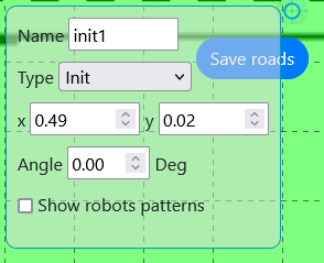 La petite barre horizontale du point indique l’orientation (la flèche) du robot. Pour le point d’init1, il est nécessaire de lui attribuer le type init et de lui donner le nom init1.